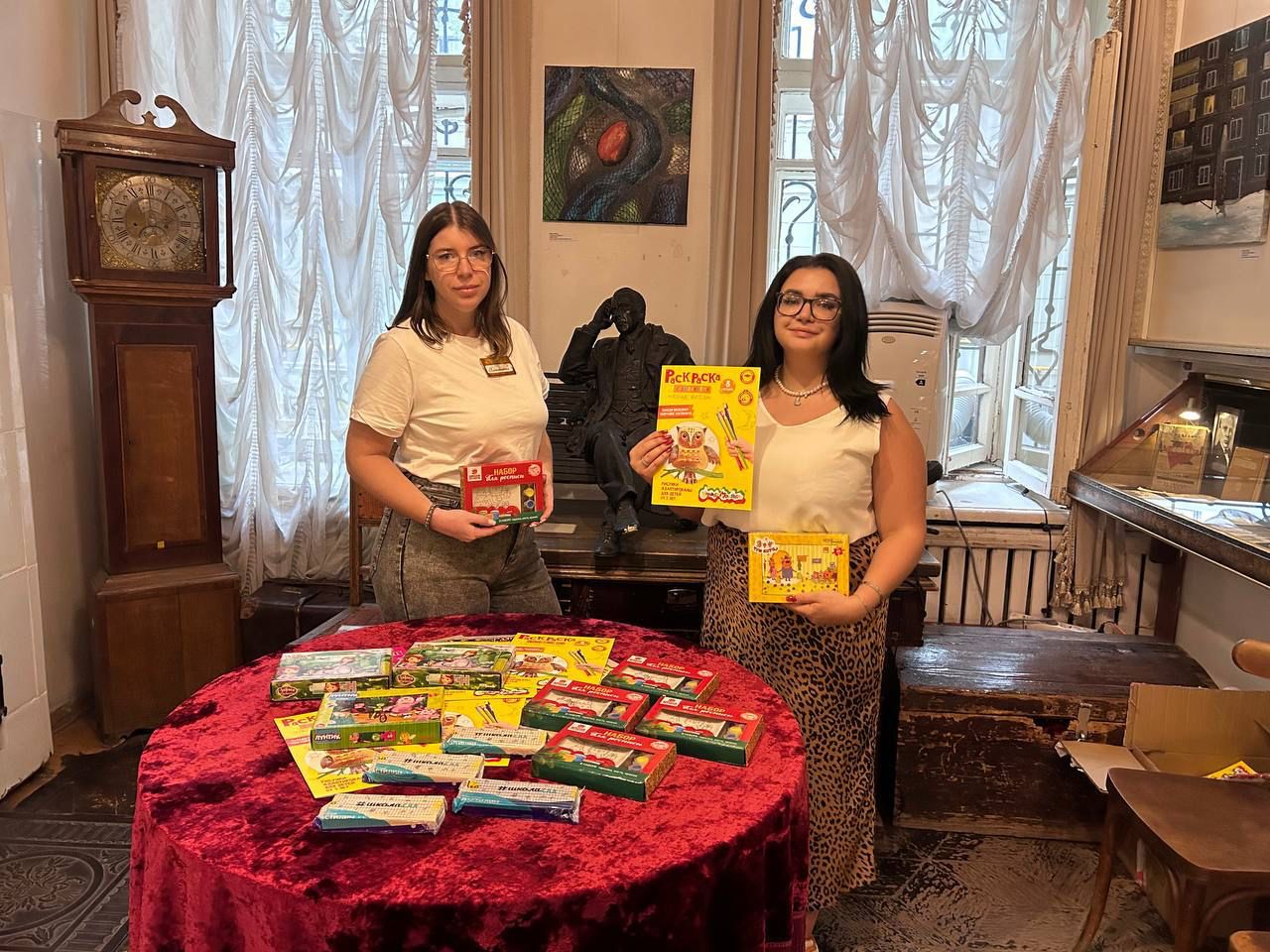 40 томов большой детской библиотеки для библиотек Донецка, Собрано более 1000 книг для детских библиотек ДНР, 45 томов из серии Детский детектив, Гуманитарная помощь ДНР ЛНР: одежда, постельное белье, полотенца, предметы первой необходимости - 36 коробок, Гуманитарная помощь для школьников: канцелярия, одежда - 1 тонну, Швейная машинка - 1 шт, Хлебопечка - 1шт, Телевизоры - 5шт, Одеяла - 50 шт, Детские вещи: одеяла - 10 шт., кроватки - 5 шт., стульчики - 10 шт, Подушки - 10 шт, Кровати - 5 шт, Детское питание - 30 коробок, Продукты питания - 5 тонн, Средства личной гигиены - 3 тонны, Одежда - 2 тонны, Медикаменты на сумму 100 000 руб, Кухонная утварь - 100 кг, Помощь курским беженцам: продукты питания - 2 тонны и теплая зимняя одежда - на сумму 300 000 руб.